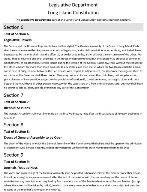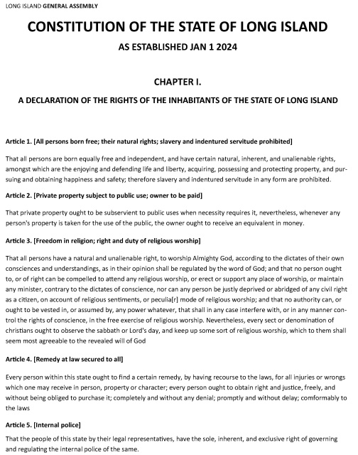 | 1ST DRAFT - LONG ISLAND STATE CONSTITUTION |
